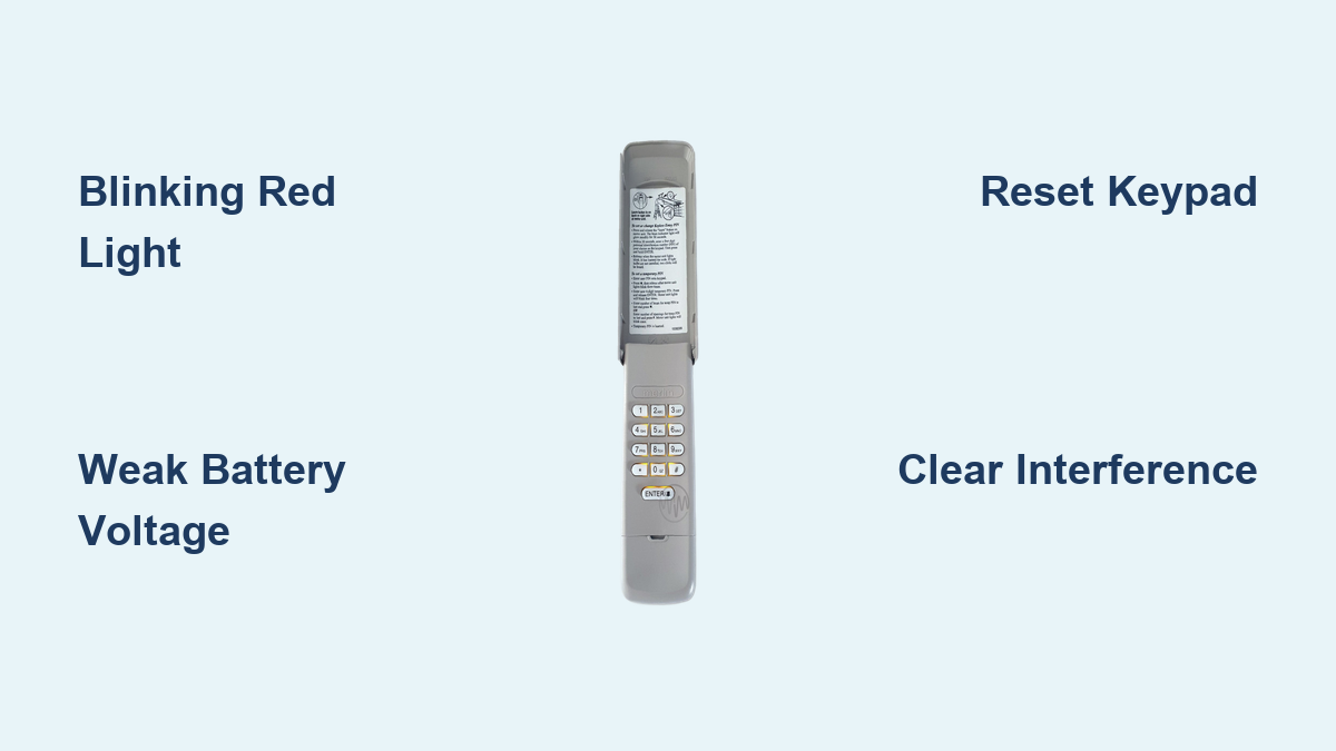 Systematically unplug potential interference sources: Wi-Fi routers, baby monitors, and Bluetooth speakers. Test keypad function after removing each device. If the blinking stops when a particular device is unplugged, you’ve found your culprit. For persistent interference, install a ferrite core on the opener’s power cord or relocate interfering devices at least 10 feet from your garage door system. Never assume newer electronics won’t affect your garage door system—they often operate on overlapping frequencies.