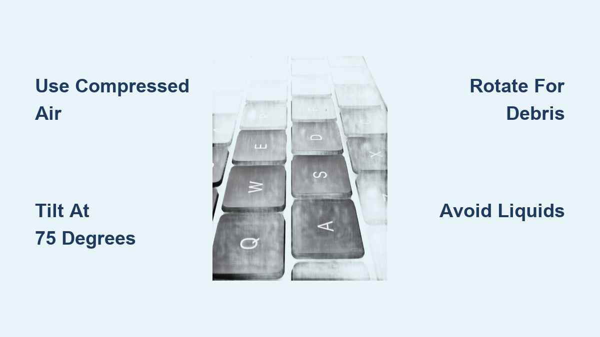 Most users waste time scrubbing keycaps or using liquids that ruin their keyboards. The truth? Butterfly mechanisms need gravity-assisted air cleaning, not physical contact. With this method, you’ll clear 90% of issues without opening a single screw. Let’s get your keyboard clicking crisply again.