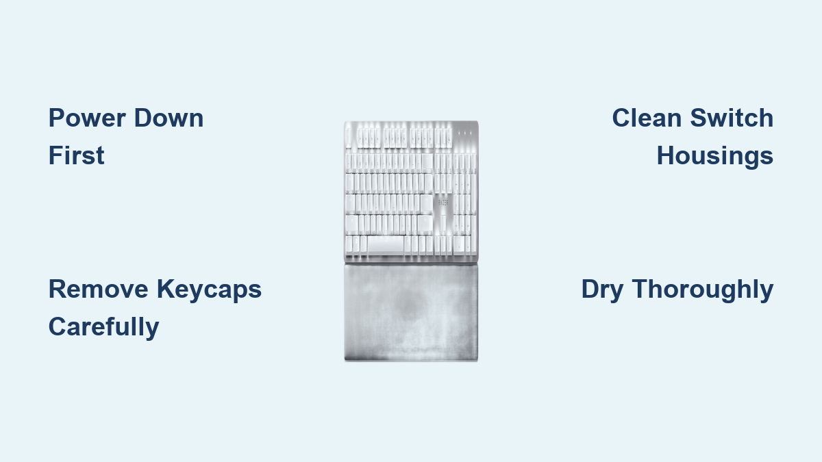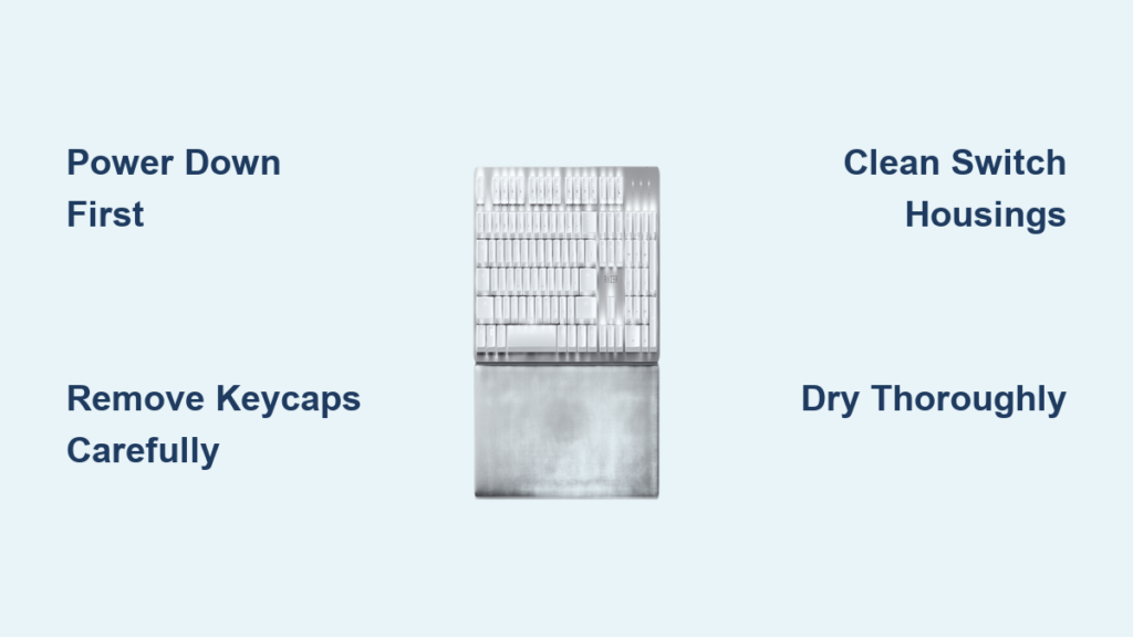 Critical mistake to avoid: Removing all keycaps at once. Work in sections (top row → function keys → main cluster) to maintain spatial awareness. If a key resists, stop—forcing it cracks stem housings.