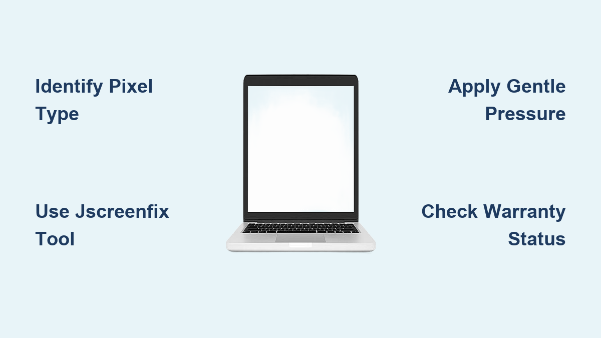 Key takeaway: True dead pixels (permanent black spots) almost always require screen replacement, while stuck pixels (showing single colors) often respond to software fixes. The critical first step in how to remove dead pixels from laptop screen is correctly identifying your pixel type before wasting time on ineffective methods. When in doubt, stop after software attempts and consult a professional—your display is worth preserving correctly.
