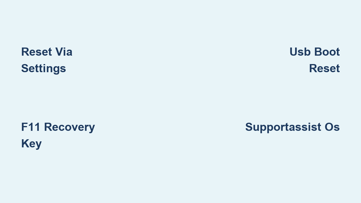 | Stuck at 1% reset progress | Run Dell diagnostics (F12 → Diagnostics) |