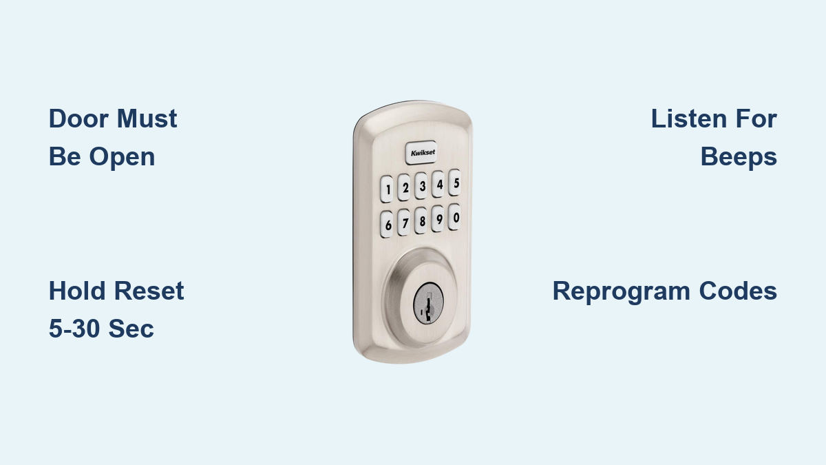 Replace batteries immediately—Kwikset locks need 3.2V minimum to reset. Test with a multimeter; weak batteries often show “good” voltage but fail under load. Ensure your door is fully open; even slight pressure on the bolt interrupts the reset sequence.
