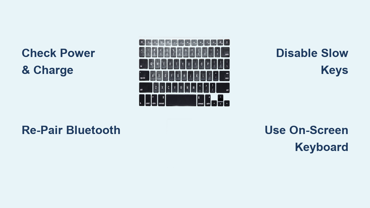 Pro tip: Hold the keyboard’s power button for 15 seconds to force a hard reset. This clears temporary firmware errors causing unresponsiveness. Never skip this step before assuming hardware failure.