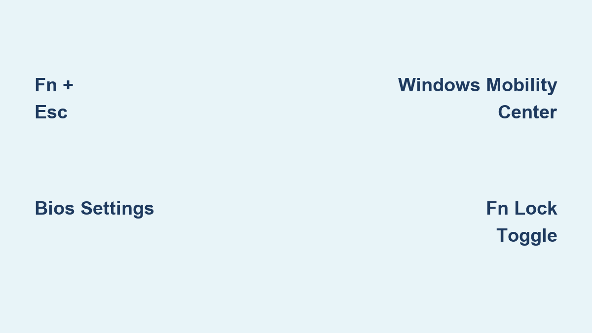 | Dell | Fn + Esc | Advanced → Function Key Row | Dell Power Manager |